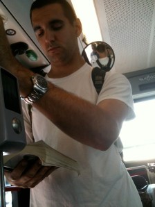 This cool tumblr blog solicits photos of hot guys reading books. Readers send in their favorite photos. Lots of surveillance! Including this one. Quick…look…no, don’t. Snap. Gotcha! For more Hot Guys Reading Books, click here. For random archived homotextuality, click here and here.