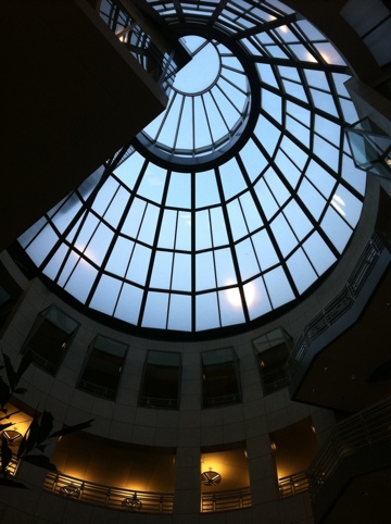 Spiral on the ceiling of the San Francisco Public Library, Main branch, this evening.