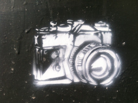Snap! Stencil art old school camera seen on the base of a pole, near SOMA ‘hood in San Francisco.
