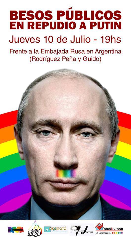 In Buenos Aires, activists are organizing a Kiss-In demonstration in front of the Russian Embassy. Poster via Dan Nicoletta and Damaris Hidalgo. Hosted by Casa Brandon. July 10th, 7pm…