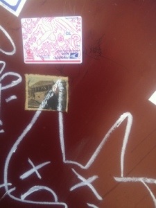 Obviously sexually provocative in its intent, D.Y.G.A.F.F.? also jabs at contemporary society, culture and politics. Drawing literally and figuratively on the detritus of post-industrial consumerism, the images of the “flying fucks” are placed on U.S.P.S. stickers, paint chips, postcards, bar coasters, linoleum samples and other throw-away surfaces. Images from the series also show up once in a while in certain public mens’ rooms, when the artist makes a rare foray from his Mendocino County mountain sanctuary.