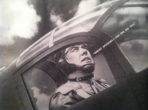 It looks like this flyboy is wearing a dog collar and leash! He’s not. At least not in this image. From a WWII era Collier’s Magazine advertisement selling the latest in sound technology: the throat microphone. Can’t make yourself heard over the engine noise and machine gun fire? No more! The Western Electric throat microphone helps win battles!