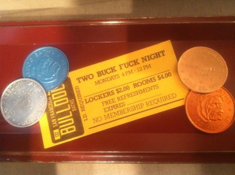 Woof! Bulldog Baths. From the exhibit Our Vast Queer Past. On display at the GLBT History Museum in San Francisco’s Castro District. Micro-exhibit on the history of the City’s bathhouses. More to cum…