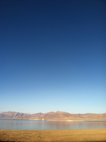 Here’s a shot of Pyramid Lake that I took a few weeks ago in Nixon, NV (Paiute Nation). Beautiful blue desert sky and lake, and you can see the little pyramid on the side closer to the far shore. Absolutely gorgeous out there.